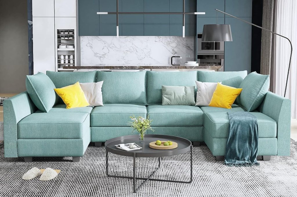 Complementing these choices with light-toned rugs underfoot completes the look, tying the room together with a sense of serenity. The result is a living space that feels not only bigger but also more inviting and refreshing, making it a perfect oasis for relaxation and comfort.